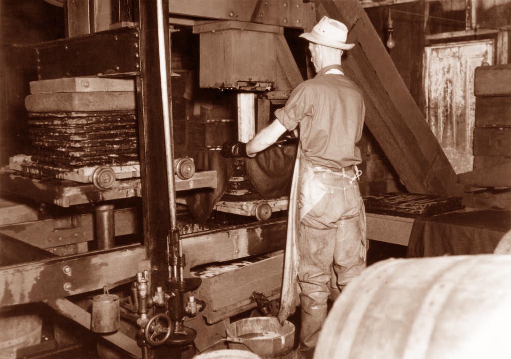 Andy Clendenen pressing apples with the Mount Gilead Cider and Fruit Press.